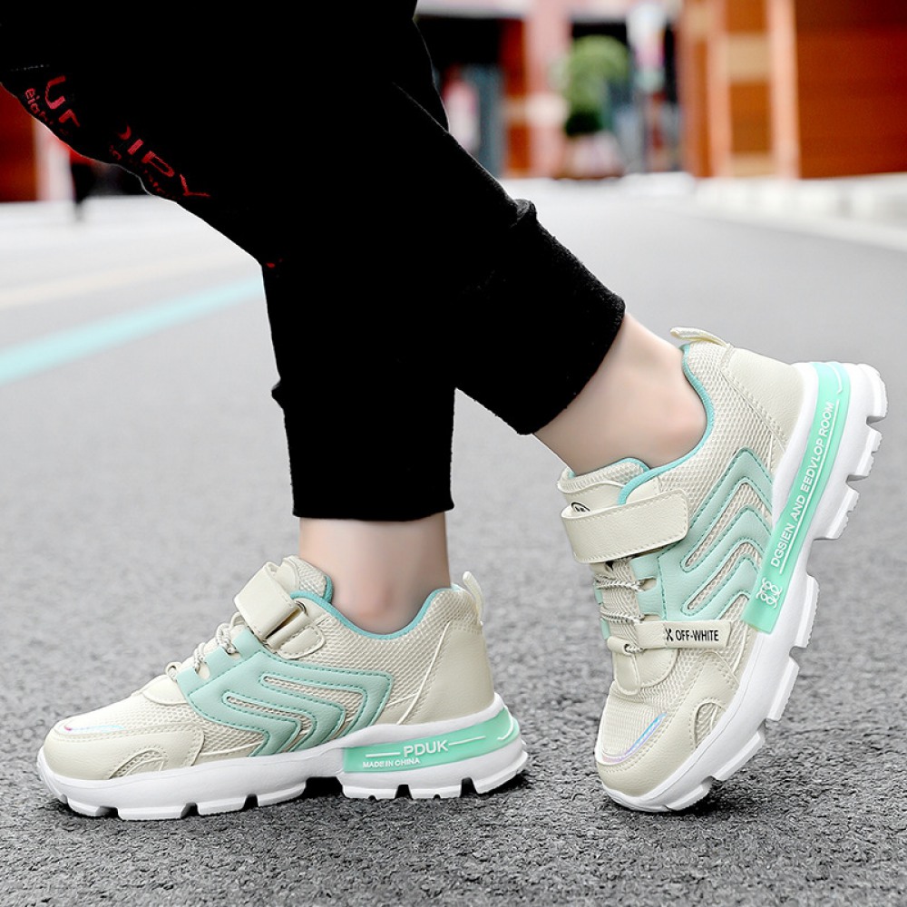 Spring and Summer New Sports Children's Leather Wave Bottom Casual Shoes Mesh Breathable Shoes