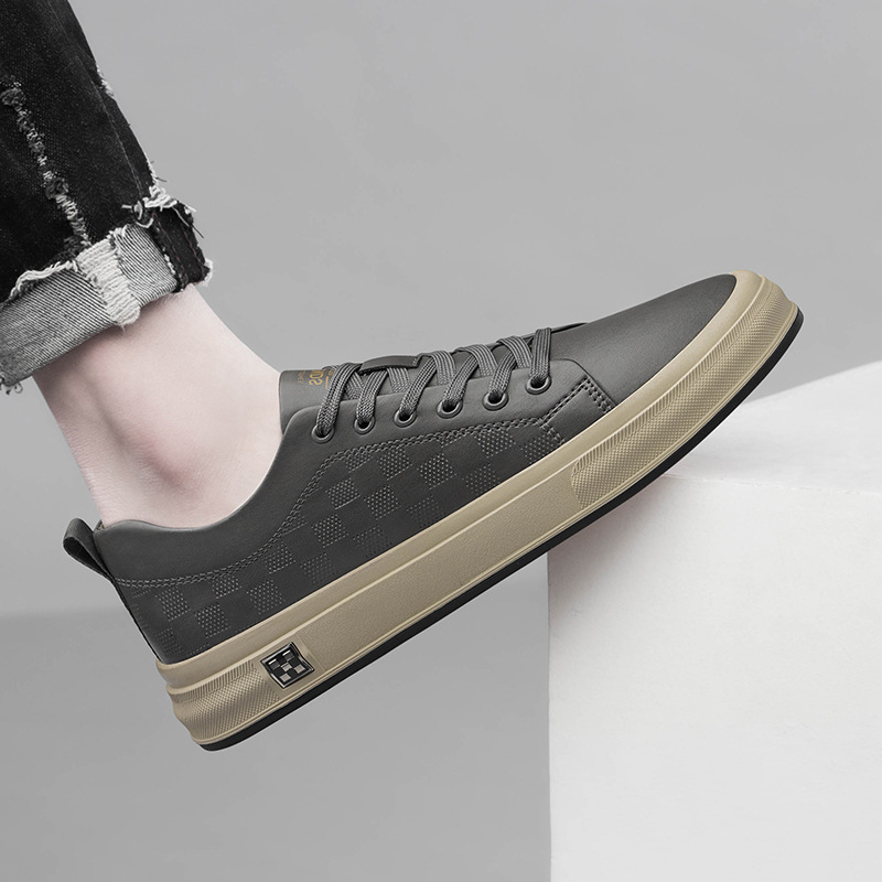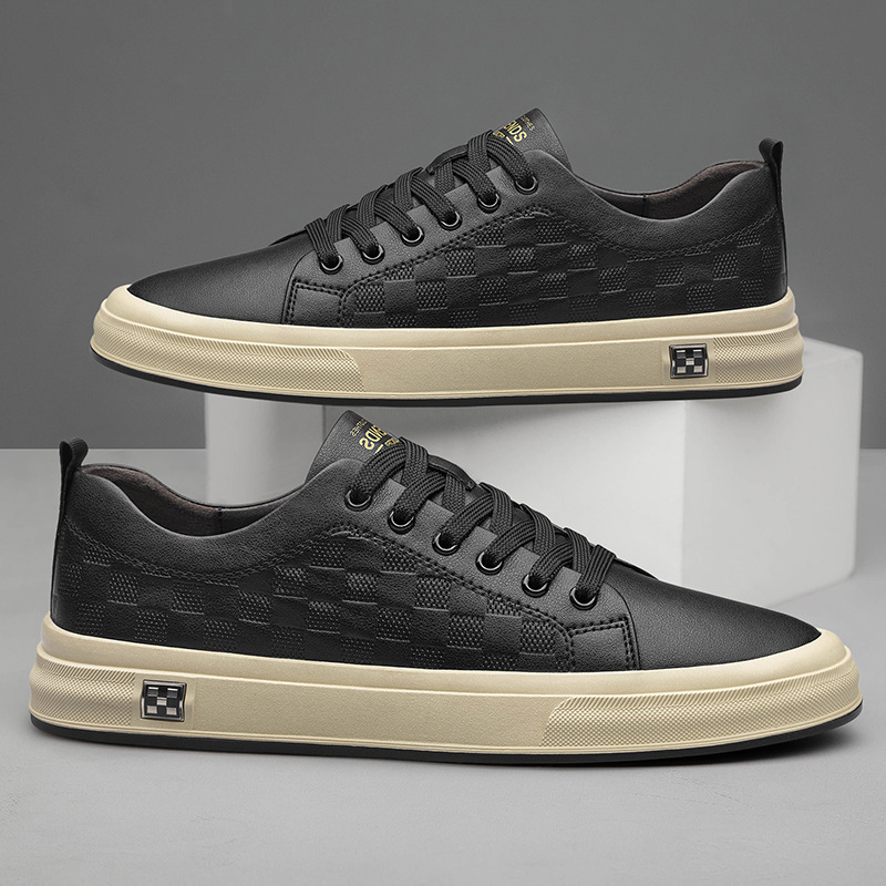 Men's Lace-up Leather Casual Flat Sneakers
